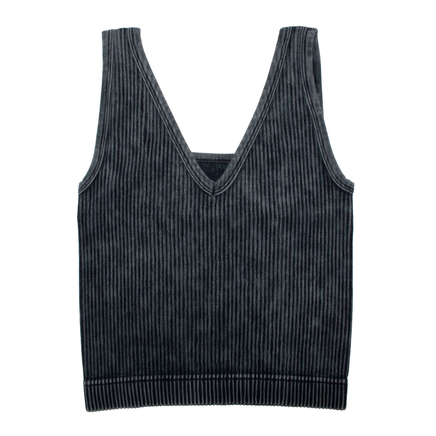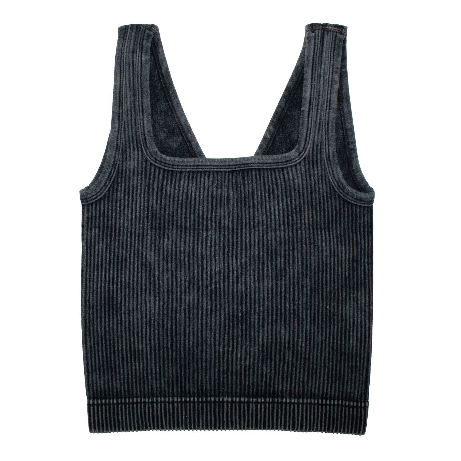 A timeless wardrobe essential, this premium washed ribbed crop tank offers both style and comfort. Designed with a versatile two-way neckline (deep V-neck and square neck), it’s perfect for layering or wearing on its own.